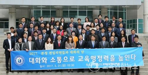 ¡¼¹«¾È=±³À°¿¬ÇÕ´º½º¡½¹Ú»ó¿õ ±âÀÚ= Àü³²µµ±³À°Ã»(±³À°°¨ À常ä)Àº Áö³ 31ÀÏ º»Ã» ÁßȸÀǽǿ¡¼ ¿ÃÇØ 1,3¿ù Áß¿¡ ÀüÀÔÇÑ º»Ã» Á÷¿ø 60¿©¸íÀÌ Âü¼®ÇÑ °¡¿îµ¥ ¡®±³À°°¨°ú ´ëÈÀÇ ³¯¡¯½Ã°£À» °¡Á³´Ù.