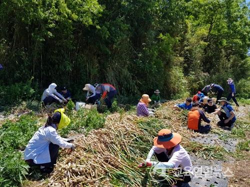 À̳¯ º»Ã» Á÷¿ø 40¿©¸íÀº º»°ÝÀûÀÎ ¿µ³óöÀ» ¸Â¾Æ °í·ÉÈ·Î ºÎÁ·ÇØÁø ÀÏ¼Õ ¶§¹®¿¡ ¾î·Á¿òÀ» °Þ°í ÀÖ´Â µµ³» ³ó°¡ÀÇ ¸¶´Ã¹ç¿¡¼ ¼öÈ® ÀÛ¾÷À» ÇÔ²² Çß´Ù