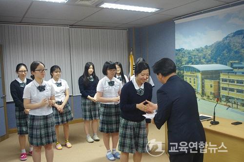 »óÀÏ¿©ÀÚ°íµîÇб³(±³Àå ±è»óµ·)´Â 19ÀÏ ¿ÀÈÄ 3½Ã »óÀÏ¿©°í ¹æ¼Û½Ç¿¡¼ °¡Á¤ÇüÆíÀÌ ¾î·Æ°Å³ª Çо÷¿¡ Ãæ½ÇÇÑ Çлý 24¸í¿¡°Ô ÀåÇÐÁõ¼¿Í ÇÔ²² Ä«³×ÀÌ¼Ç ÀåÇбÝÀ» Àü´ÞÇß´Ù.