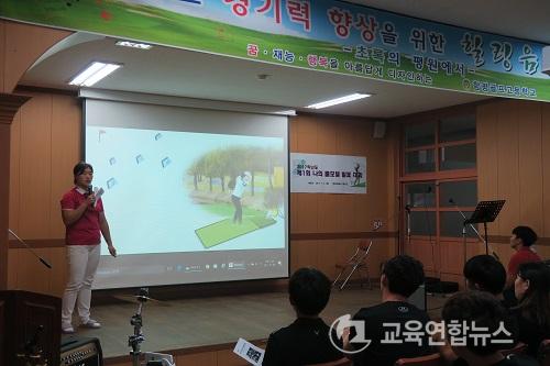 ±Ç¼ø¿ë ±³ÀåÀº ¡°¼¼°èÀûÀÎ °ñÇÁ½ºÅ¸¸¦ ²Þ²Ù¸ç °¡Á·À» ¶°³ª ¹ã, ³· ¾øÀÌ °ñÇÁ¿¡ ¸ÅÁøÇÏ´Â ÇлýµéÀ» ¹Ù¶óº¸¸ç ÇлýµéÀ» À§ÇÑ Èú¸µÀ½¾Çȸ¸¦ °èȹÇÏ°Ô µÇ¾ú´Âµ¥ ªÀº ½Ã°£À̳ª¸¶ ÇлýµéÀÌ ³ë·¡¸¦ µû¶ó ºÎ¸£¸ç ¾î±úÃã Ãß´Â ¸ð½ÀÀ» º¸´Ï Èú¸µÀ½¾Çȸ¸¦ ¿­±â¸¦ ÀßÇß´Ù´Â »ý°¢À» Çß´Ù¡±¸ç, ¾ÕÀ¸·Î ¸Å´Þ °³ÃÖÇϰڴٴ ¾à¼ÓÀ» ÇÏ¿´´Ù.