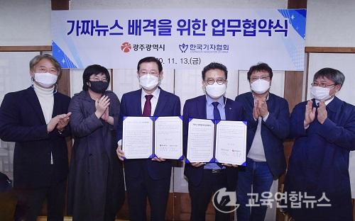 ±¤ÁÖ½Ã-Çѱ¹±âÀÚÇùȸ, °¡Â¥´º½º ¹è°Ý Èû ¸ðÀº´Ù 13ÀÏ ¾÷¹«Çù¾à ü°áÇÏ°í ½Ã¹Î ±Ç¸®ÁõÁø À§ÇÑ »óÈ£Çù·Â ´ÙÁü |