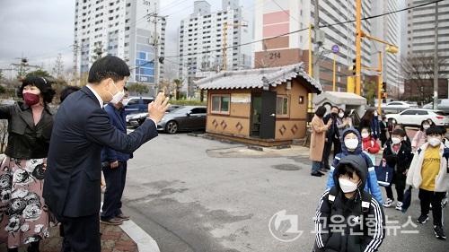 Àå¼®¿õ ±³À°°¨Àº °³ÇРù³¯ÀÎ 2ÀÏ(È) ¿ÀÀü ±¤¾ç Áö¿ª Çб³¸¦ ¹æ¹®ÇØ Äڷγª19 ¹æ¿ª ´ëÃ¥À» Á¡°ËÇÑ µÚ µî±³¿¡ ³ª¼± ÇлýµéÀ» ¹Ý°©°Ô ¸ÂÀÌÇß´Ù.