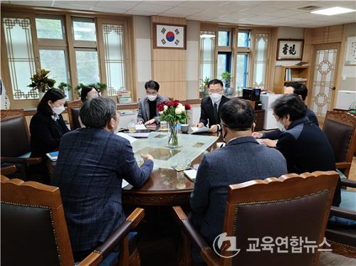 À̹ø ÇùÀÇȸ´Â Áö¿ª±³À°Ã» ´ÜÀ§¿¡¼­ °í±³ÇÐÁ¡Á¦ÀÇ Àü¸é ½Ç½Ã ¿¹°í¿¡ µû¸¥ Áö¿ª ±³À° ±â¹Ý ±¸ÃàÀ» À§ÇØ ¸¶·ÃµÇ¾úÀ¸¸ç, ÇöÀç ¿î¿µµÇ°í ÀÖ´Â Çб³ °£ °øµ¿±³À°°úÁ¤ ÇöȲ°ú ¹®Á¦Á¡, Çб³-±³À°Áö¿øÃ»-Áö¿ª»çȸ¿Í Çù·Â ¹æ¾È µîÀ» ÇùÀÇÇÏ¿´´Ù.
