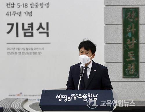 ¶Ç, Àü³¯ÀÎ 17ÀÏ(¿ù)¿¡´Â Àü³² ¹«¾È±º »ïÇâÀ¾ Àü³²µµÃ» ¾Õ ±¤Àå¿¡¼ ¿¸° Àü³²5¡¤18¹ÎÁßÇ×Àï 41ÁÖ³â±â³äÇà»çÀ§¿øÈ¸ ÁÖ°ü ±â³ä½Ä¿¡ Âü¼®ÇØ Ãß³ä»ç¸¦ ³¶µ¶Çß´Ù.