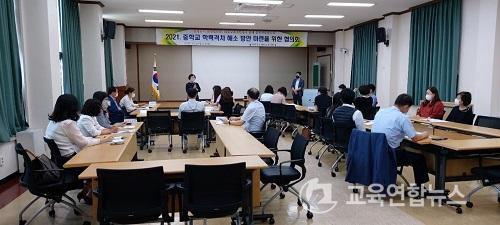 ¡°ÁßÇб³ Çз°ÝÂ÷ ÇØ¼Ò ¹æ¾È ¸¶·ÃÀ» À§ÇØ ¼±»ý´ÔµéÀÌ ¾ÕÀå¼´Ù.¡± ȼø±³À°Áö¿øÃ», 2021. ÁßÇб³ Çз°ÝÂ÷ ÇØ¼Ò ¹æ¾È ¸¶·ÃÀ» À§ÇÑ ÇùÀÇȸ °³ÃÖ |