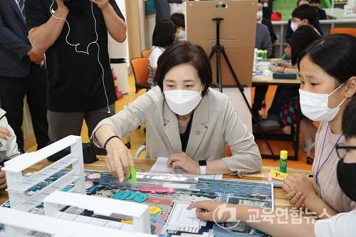 ¿ëÈ£ÃÊ 6Çг⠰ø°£µðÀÚÀÎ ¼ö¾÷¿¡´Â À¯ÀºÇý ºÎÃѸ®¿Í ±è¿øÀÌ ±¹È¸ÀÇ¿ø(¸ñÆ÷), Àå¼®¿õ Àü³²±³À°°¨, À̱âºÀ ºÎ±³À°°¨ÀÌ Âü¿©ÇØ ÇлýµéÀÇ Çб³°ø°£¿¡ ´ëÇÑ ¹Ù¶÷°ú ¼Ò°¨¿¡ ´ëÇØ ±Í¸¦ ±â¿ï¿´´Ù. ¼ö¾÷¿¡ ³¡±îÁö Âü¿©ÇÑ À¯ ºÎÃѸ®´Â¡°¹Ì·¡Çб³´Â ¼ö¾÷°ú ±³À°°úÁ¤ÀÇ Çõ½Å¿¡¼ ¸¸µé¾îÁö´Â °Í.¡±À̶ó¸ç ¹Ì·¡±³À° Àüȯ¿¡¼ Çб³±³À°ÀÇ Á߿伺À» °Á¶Çß´Ù.