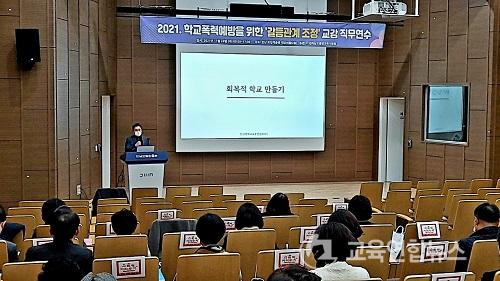 ¡¼±¤¾ç=±³À°¿¬ÇÕ´º½º¡½¹Ú»ó¿õ ±âÀÚ= Àü¶ó³²µµ±¤¾ç±³À°Áö¿øÃ»(±³À°Àå Á¤Á¾Çõ)ÀÌ Çб³Æø·Â ¿¹¹æ°ú Çб³ ³» °¥µî¹®Á¦¸¦ ±³À°Àû ÇØ°á·Î À̲ø±â À§ÇÑ ¡®°¥µî°ü°è Á¶Á¤¡¯±³°¨ Á÷¹«¿¬¼ö¸¦ ÁøÇàÇß´Ù.