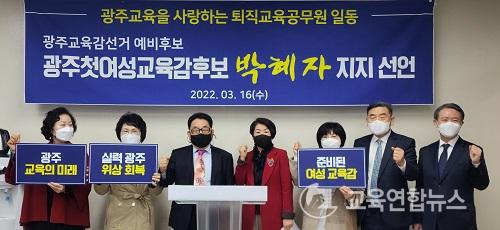 ±¤Áֽñ³À°Ã» ... ÅðÁ÷ ±³À°°ø¹«¿ø ¹ÚÇýÀÚ Èĺ¸ ÁöÁö¼±¾ð ¡°ÃÊ´ë¿©¼º ±³À°°¨ ¹ÚÇýÀÚÈĺ¸ Àû±Ø ÁöÁöÇÑ´Ù¡± |