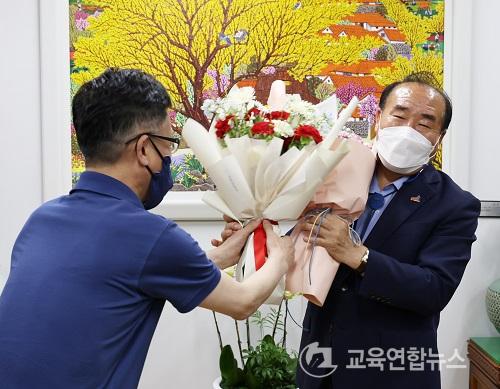 Á¹¾÷»ýµéÀº Àå ±³À°°¨¿¡°Ô ÃàÇÏ ²É´Ù¹ß°ú °¨»çÆÐ¸¦ Àü´ÞÇϰí ÇÐâ ½ÃÀý À̾߱⸦ ³ª´³´Ù. ±³Á÷ 52³â Â÷ ±³À°°¨µµ ¾î¸°ÀÌó·³ ±â»µÇß´Ù´Â ÈĹ®ÀÌ´Ù.