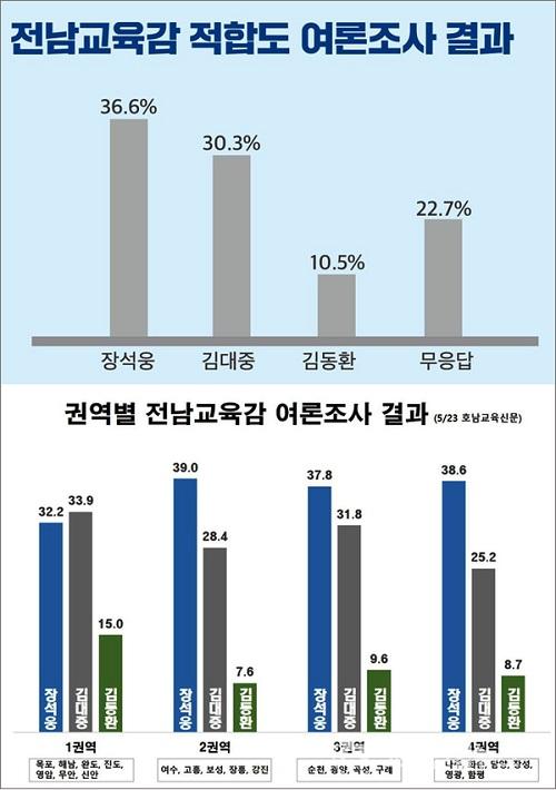 Â÷±â Àü³²±³À°°¨ ÀûÇÕµµ Á¶»ç¿¡¼ Àå¼®¿õ Èĺ¸ 36.6%·Î ¼±µÎ¸¦ ´Þ·È´Ù. ÀÌ¾î ±è´ëÁß È帰¡ 30.3%, ±èµ¿È¯ Èĺ¸ 10.5%ÀÇ ÁöÁöÀ²À» º¸¿´À¸¸ç ¡®ÁöÁöÈĺ¸ ¾ø´Ù¡¯ 13.4%, ¡®Àß ¸ð¸£°Ú´Ù¡¯ 9.3%¿´´Ù.
