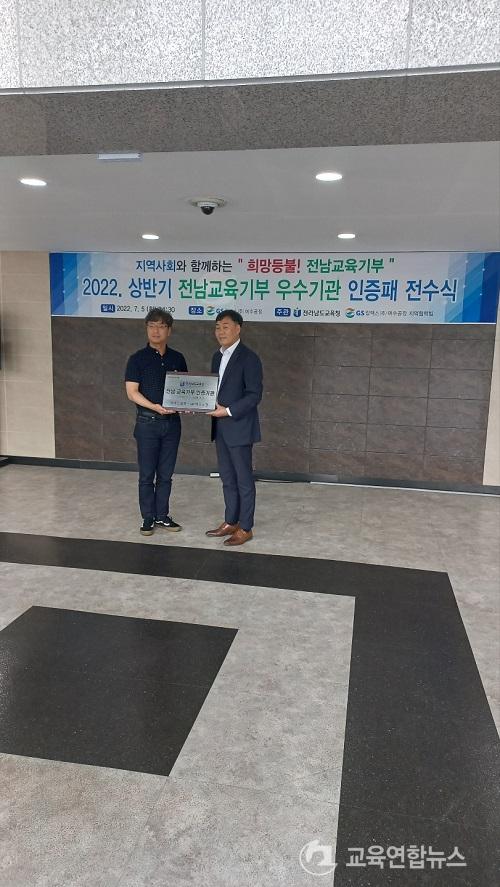 Àü³²±³À°Ã», »ó¹Ý±â ±³À°±âºÎ ¿ì¼ö±â°ü 2°÷¿¡ ÀÎÁõÆÐ Àü¼ö
