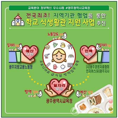 ½Ã±³À°Ã»Àº °¨¿°º´À¸·ÎºÎÅÍ ¾ÈÀüÇÑ Çб³ ±Þ½Ä½Ç Á¶¼ºÀ» À§ÇÑ ¹æ¿ª¡¤¼Òµ¶ °­È­·Î ±Þ½Ä¾÷¹« Á¾»çÀÚµéÀÇ ¾÷¹«°¡ °úÁßÇØÁöÀÚ Çб³ ÇöÀåÀ» Áö¿øÇϱâ À§ÇØ ±¤ÁÖÁö¹æ°í¿ë³ëµ¿Ã», (»ç)±¤Áְ濵ÀÚÃÑÇùȸ °£ ÇùÀÇü¸¦ ±¸¼ºÇß´Ù. À̸¦ ÅëÇØ ±¤ÁÖÁö¹æ°í¿ë³ëµ¿Ã»Àº ÀÏÀÚ¸® ±¸ÀÎÈñ¸ÁÀÚÀÇ ÀΰǺñ¸¦ Áö¿ø, (»ç)±¤Áְ濵ÀÚÃÑÇùȸ´Â ±¸ÀÎÈñ¸ÁÀÚ¸¦ ¸ÅĪ, ±¤Áֽñ³À°Ã»Àº ÀÏÀÚ¸®¿Í ÀϰæÇè Àå¼Ò¸¦ Á¦°øÇÏ°Ô µÆ´Ù.