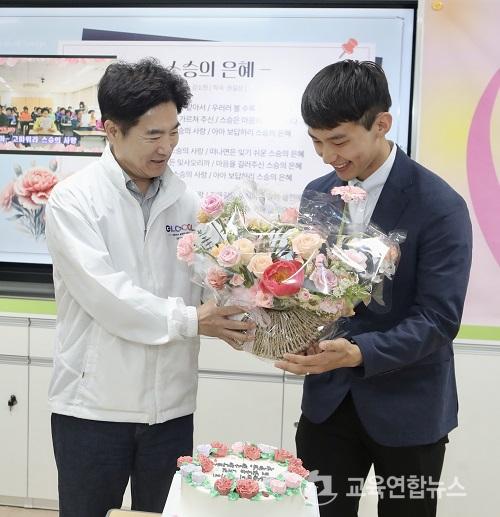13ÀÏ Àü³²±³À°Ã»¿¡ µû¸£¸é"À̳¯ Çà»ç´Â ±è´ëÁß ±³À°°¨ÀÌ Á÷Á¢ ½º½ÂÀÇ ³¯ ±â³ä ²É´Ù¹ß ¹× Ưº° Á¦ÀÛ ÄÉÀÌÅ©¸¦ Àü´Þ°ú ±×°£ÀÇ °øÀ» ÀÎÁ¤¹Þ¾Æ Á¦43ȸ ½º½ÂÀÇ ³¯ ±â³ä Àå°ü ¹× ±³À°°¨ ǥâÀ» ¹Þ´Â ±³»ç¿¡°Ô ǥâÀåÀ» ¼ö¿©Çß´Ù"°í ¹àÇû´Ù.