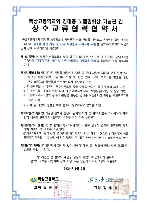 ±è´ëÁß Á¤½Å °è½Â°ú ¹ÎÁֽùα³À° µîÀ» ÁÖÁ¦·Î ÇÑ Àü¹®°¡ Ư° ÇüÅÂÀÇ ±³À° Áö¿ø°ú Çлý ´ë»ó ÇÁ·Î±×·¥ ¿î¿µ Áö¿ø µîÀ» ÁÖ³»¿ëÀ¸·Î ÇÏ´Â MOU¸¦ ü°áÇß´Ù. ¸ñ»ó°í´Â ¿ª»ç ޱ¸ µ¿¾Æ¸® ¹× À¯³×½ºÄÚ µ¿¾Æ¸® µî°ú ¿¬°èÇÏ¿© ±è´ëÁß ÆòÈÀÇ ±æÀ» ¸¸µé¾î °¥ ¿¹Á¤ÀÌ´Ù.