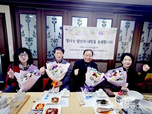 Çà»ç¿¡´Â ÅðÁ÷ ±³(¿ø)ÀåÀ» ºñ·ÔÇØ ±³À°Áö¿øÃ» °ü°èÀÚµéÀÌ Âü¼®ÇÏ¿© ±×°£ÀÇ Çå½Å¿¡ Á¸°æ°ú °¨»çÀÇ ¸¶À½À» ÀüÇß´Ù.