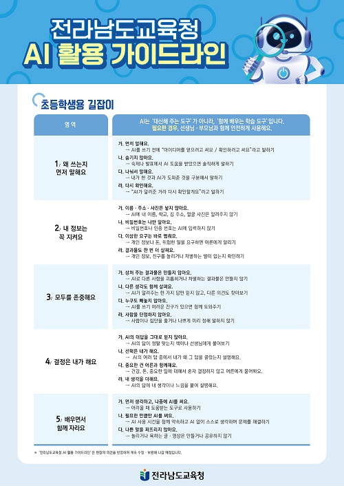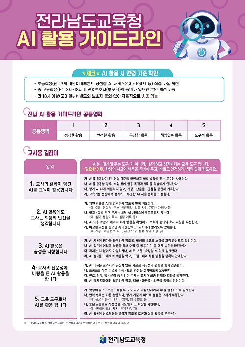 Àü³²±³À°Ã», ¡®Àü³² AI Ȱ¿ë °¡À̵å¶óÀΡ¯ Çб³ º¸±Þ ±³»ç¿ë‧Çлý¿ë ±¸¼º¡¦AI Ȱ¿ë ¿øÄ¢‧½º¸¶Æ®±â±â »ç¿ë ±âÁØ ´ã¾Æ |