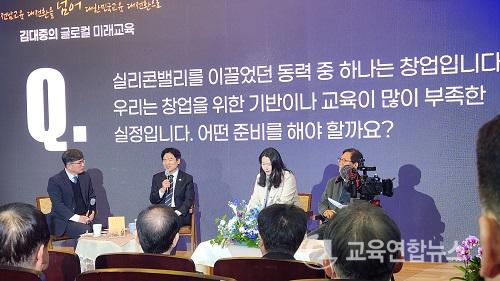 ÀÌ¿¡ ±è´ëÁß ±³À°°¨Àº "¹Ì±¹ÀÇ ½Ç¸®Äܹ븮¿¡´Â ½ºÅÄÆ÷µå´ëÇÐÀÇ ÀÎÀç°¡ ¼ºÀåÀÇ ±Ù¿øÀÌ µÆ½À´Ï´Ù. ±¤ÁÖ¿¡´Â ±¤ÁÖ°úÇбâ¼ú´ë¿Í Àü³² ³ªÁÖ¿¡ Çѱ¹¿¡³ÊÁö°ø°ú´ëÇÐÀÌ ÀÖ´Ù"¸ç "ÀÎÀç À°¼ºÀ» ÅëÇØ Àü³²±¤ÁÖ°¡ ´ëÇѹα¹ ¹Ì·¡±³À°À» ¼±µµÇÏ´Â Áß½ÉÀ¸·Î À̲ø°Ú´Ù"°í ´äº¯ÇØ ¹Ú¼ö °¥Ã¤¸¦ ¹Þ¾Ò´Ù.