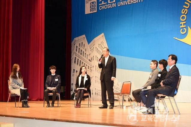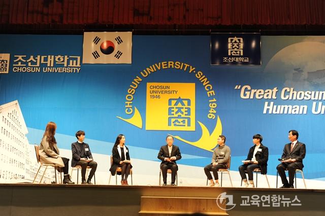 ¹Ý±â¹® Àü ÃÑÀåÀº Á¶¼±´ë ÇØ¿À¸§°ü ´ë°´ç¿¡¼ ¡®Ã»³â°ú ´ëÇѹα¹ÀÇ ¹Ì·¡¡¯¸¦ÁÖÁ¦·Î °¿¬Çϰí Á¶¼±´ëÇб³ Çлý ÆÐ³ÎµéÀÇ Áú¹®¿¡ ´äº¯ÇÏ´Â ÅäÅ©¼î¸¦ Çß´Ù.