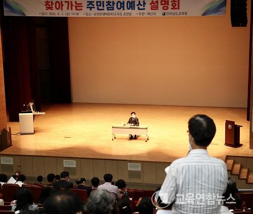 À̹ø ¼³¸íȸ´Â Àü³² ±³À°Á¤Ã¥°ú ±³À°ÀçÁ¤À» µµ¹Îµé¿¡°Ô ¾Ë¸®°í, ÁÖ¹ÎÀÇ ÀǰßÀ» ¼ö·ÅÇØ À̸¦ 2023³âµµ ¿¹»êÆí¼º¿¡ ¹Ý¿µÇϱâ À§ÇØ ¸¶·ÃµÆ´Ù