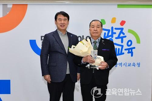 ¡¼±¤ÁÖ=±³À°¿¬ÇÕ´º½º¡½ÀÌ¿µÁö±âÀÚ= ÀÌÁ¤¼± ±³À°°¨Àº 27ÀÏ ±³À°°¨½Ç¿¡¼ ÅðÁ÷ ¿ø·Î Á÷¿ø ±èÁ¾¼®(70) ¾¾¿¡°Ô °¨»çÆÐ¸¦ ¼ö¿©Çß´Ù.