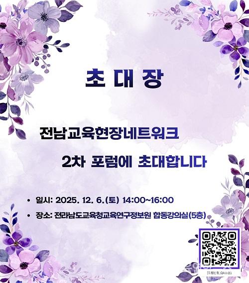 Àü³²±³À°ÇöÀå³×Æ®¿öÅ©(ȸÀå Á¶¿µ·¡)°¡ ¿À´Â 12¿ù 6ÀÏ Àü¶ó³²µµ±³À°Ã»±³À°¿¬±¸Á¤º¸¿ø¿¡¼ ¡®Á¦2Â÷ Àü³²±³À°ÇöÀå³×Æ®¿öÅ© Æ÷·³¡¯À» ¿°í ±³À° ÇöÀåÀÇ ¸ñ¼Ò¸®¸¦ ´ãÀº ¡®Àü³²±³À°ÁöÇâ·Ï¡¯À» Àü¶ó³²µµ±³À°Ã»¿¡ Àü´ÞÇÒ °èȹÀ̶ó°í ¹àÇû´Ù.