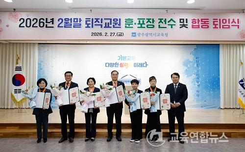 ¡¼±¤ÁÖ=±³À°¿¬ÇÕ´º½º¡½¹Ú»ó¿õ ±âÀÚ= ±¤Áֽñ³À°Ã»(±³À°°¨ ÀÌÁ¤¼±)Àº 27ÀÏ º»Ã» ´ëȸÀǽǿ¡¼ 2¿ù ¸» Á¤³âÅðÁ÷ ±³¿ø°ú 8¿ù ¸» ¸í¿¹ÅðÁ÷ ¿¹Á¤ ±³¿øÀÌ Âü¼®ÇÑ °¡¿îµ¥ ¡®ÅðÁ÷±³¿ø ÈÆ¡¤Æ÷Àå Àü¼ö ¹× ÇÕµ¿ ÅðÀӽġ¯À» °³ÃÖÇß´Ù.