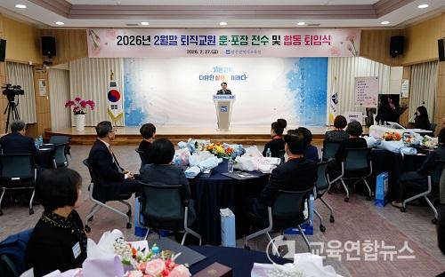 À̹ø ÅðÀÓ½ÄÀº ÀçÁ÷±â°£ ±³À° ÇöÀå¿¡¼ Çлý Áöµµ¿¡ Çå½ÅÇϰí, ¼º½Ç°ú ¿Á¤À¸·Î Á÷¹«¸¦ ¼öÇàÇÑ ÅðÁ÷±³¿øÀÇ ¸í¿¹·Î¿î ÅðÀÓÀ» ÃàÇÏÇϱâ À§ÇØ ¸¶·ÃµÆ´Ù.