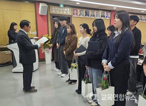 ¡¼¼øÃµ=±³À°¿¬ÇÕ´º½º¡½¹Ú»ó¿õ ±âÀÚ= Àü¶ó³²µµ¼øÃµ±³À°Áö¿øÃ»(±³À°Àå, ±è½Å±Ô)Àº Áö³ 9ÀÏ ¼øÃµ±³À°Áö¿øÃ» ´ëȸÀǽǿ¡¼ 3¿ù 1ÀÏÀÚ ¹× 3¿ù 2ÀÏÀÚ ÃÊµî ½Å±Ô±³»ç 11¸íÀ» ´ë»óÀ¸·Î ÀÓ¸íÀå ¼ö¿©½ÄÀ» ¿¾î ±³Á÷¿¡ ù¹ßÀ» ³»µó´Â ±³»çµéÀ» ÃàÇÏÇß´Ù.