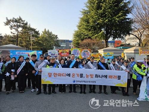 À̳¯ Ä·ÆäÀο¡´Â Á¶¿¬ÁÖ ÇØ³²±³À°Áö¿øÃ» ±³À°ÀåÀ» ºñ·ÔÇØ ÇØ³²±º¼ö, ÇØ³²±³À°Áö¿øÃ» °ü°èÀÚ¿Í Áö¿ª»çȸ À¯°ü±â°ü °ü°èÀÚ µîÀÌ ÇÔ²²Çß´Ù. Âü¿©ÀÚµéÀº µî±³ÇÏ´Â Çлýµé¿¡°Ô Çб³Æø·Â ¿¹¹æ ¸Þ½ÃÁö°¡ ´ã±ä È«º¸¹°À» Àü´ÞÇÏ°í µû¶æÇÑ Àλ縦 °Ç³×¸ç ¾ÈÀüÇÑ µî±·±æÀ» ÀÀ¿øÇß´Ù. ¶ÇÇÑ ¡®¸» ÇѸ¶µð¿¡ ¿Â±â¸¦, ´«ºû Çϳª¿¡ ¹è·Á¸¦¡¯À̶ó´Â ¹®±¸¸¦ ÅëÇØ ¼·Î¸¦ Á¸ÁßÇÏ°í ¹è·ÁÇÏ´Â Çб³ ¹®È¸¦ °Á¶Çß´Ù.