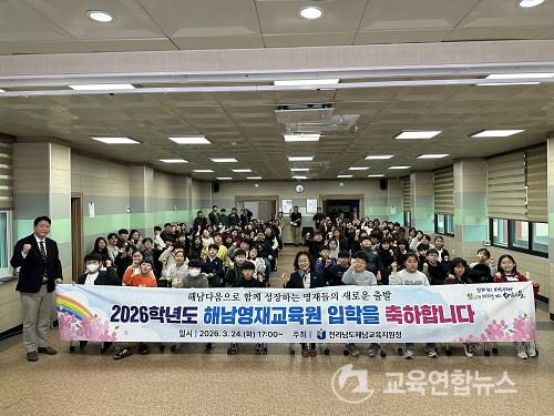 ¡¼Çس²=±³À°¿¬ÇÕ´º½º¡½ÀÌ¿µÁö±âÀÚ= Àü¶ó³²µµ ÇØ³²±³À°Áö¿øÃ»(±³À°Àå Á¶¿¬ÁÖ)Àº Áö³ 3¿ù 24ÀÏ ¿ÀÈÄ 5½Ã, ÇØ³²±³À°Áö¿øÃ» 3Ãþ ´ëȸÀǽǿ¡¼ 2026Çг⵵ ÇØ³²¿µÀç±³À°¿ø ÀÔÇлý 57¸í°ú Çкθð, Áöµµ±³»ç°¡ Âü¼®ÇÑ °¡¿îµ¥ ¡®Çس²¿µÀç±³À°¿ø °³°½Ä ¹× ¿À¸®¿£Å×À̼ǡ¯À» °³ÃÖÇß´Ù.
