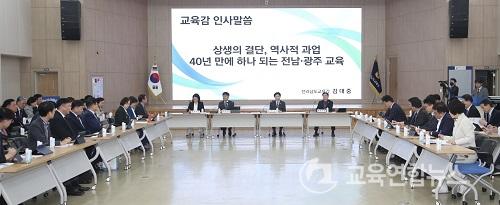 À̹ø ÇùÀÇȸ´Â Àü³²¡¤±¤ÁÖ ±³À°ÇàÁ¤ÅëÇÕÀÇ Çʿ伺°ú ´çÀ§¼ºÀ» °øÀ¯Çϰí, ±³À°ÀÚÄ¡ È®´ë¿Í Áö¿ª ÀÎÀç ¾ç¼º µî ±³À°ÇöÀå¿¡¼ ü°¨ÇÒ ¼ö ÀÖ´Â Á¤Ã¥¹æÇâÀ» ¸ð»öÇϱâ À§ÇØ ¸¶·ÃµÆ´Ù.