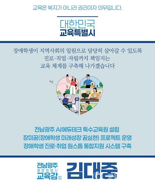 ¡¼±¤ÁÖ=±³À°¿¬ÇÕ´º½º¡½¹Ú»ó¿õ ±âÀÚ = ±è´ëÁß Àü³²±¤ÁÖÅëÇÕÆ¯º°½Ã ±³À°°¨ ¿¹ºñÈ帰¡ Áö³ 20ÀÏ Àå¾ÖÀÎÀÇ ³¯À» ¸Â¾Æ, ¡°±³À°Àº º¹Áö°¡ ¾Æ´Ï¶ó ±Ç¸®¡±¶ó´Â ¿øÄ¢À» ´ãÀº Ư¼ö±³À° °ü·Ã °ø¾àÀ» ¹ßÇ¥Çß´Ù.