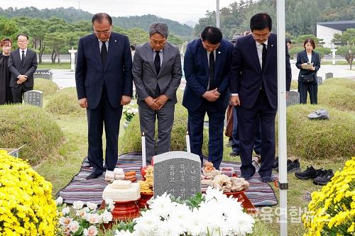 ÀÌÁ¤¼± ±³À°°¨, ¹Ú°üÇö ¿»ç Á¦43ÁÖ±â Ã߸ð½Ä Âü¼® ¡®¹ÎÁÖÈÀÇ »õº®±â°üÂ÷¡¯ ¹Ú°üÇö ¿»çÀÇ Á¤½Å, ¹Ì·¡¼¼´ë·Î °è½Â |