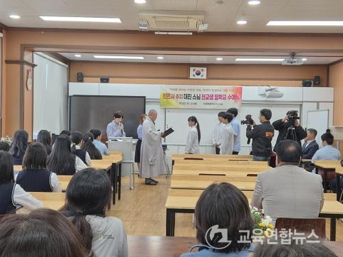 ¡¼±¸·Ê=±³À°¿¬ÇÕ´º½º¡½¹Ú»ó¿õ ±âÀÚ= ±¸·ÊºÏÁßÇб³(±³Àå ±èÇö¹è)´Â 10¿ù 21ÀÏ ¡®ÃµÀº»ç ÁÖÁö ´ëÁø ½º´ÔÀ¸·ÎºÎÅÍ Àü±³»ý 28¸í¿¡°Ô °¢ 30¸¸¿ø¾¿ ÃÑ 840¸¸¿øÀÇ ÀåÇÐ±Ý ¼ö¿©½Ä¡¯À» °¡Á³´Ù.