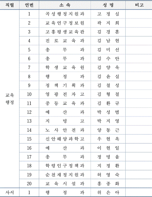 Àü³²±³À°Ã», ÀϹÝÁ÷°ø¹«¿ø 5±Þ ½ÂÁø´ë»óÀÚ 21¸í ¹ßÇ¥ ¡®±Û·ÎÄà Àü³²±³À°¡¯ ½ÇÇö À§ÇÑ Çб³ÇöÀå Áö¿ø ´Éµ¿Àû ¿ªÇÒ ±â´ë |