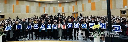 ³ªÁÖ±³À°Áö¿øÃ»¿¡ µû¸£¸é, Àü³²¿Ü±¹¾î°íµîÇб³´Â 1¿ù 2ÀÏ IB µðÇ÷θ¶ ÇÁ·Î±×·¥(DP) ¿ùµå½ºÄð ÀÎÁõÀ» ȹµæÇÏ°í ¡®IB DP ¿ùµå½ºÄð ÀÎÁõ ¼±Æ÷½Ä ¹× ÇöÆÇ½Ä¡¯À» °³ÃÖÇß´Ù. ÀÌ´Â °íµîÇб³ ´Ü°è¿¡¼ ±¹Á¦ ±âÁØ¿¡ ºÎÇÕÇÏ´Â ±³À°°úÁ¤ ¿î¿µ ¿ª·®À» °ø½ÄÀûÀ¸·Î ÀÎÁ¤¹ÞÀº ¼º°ú·Î, ³ªÁÖ Áö¿ª IB ±³À°ÀÇ Á¤Á¡¿¡ ÇØ´çÇÑ´Ù.