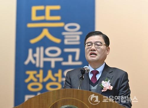 ¹Ú»óö ÃÑÀåµµ Ãà»ç¸¦ ÅëÇØ ¡°¿ì¸® ´ëÇÐÀÇ ¿ª»ç¿Í Çö½ÇÀ» ²ç¶Õ°í °è½Ã´Â ÀÌ»çÀå´ÔÀÇ ¸®´õ½Ê, dzºÎÇÑ °æÇè°ú ÅëÂûÀº Áö¿ª»çȸ ¹ßÀüÀ» ¼±µµÇÏ°í ½Ã´ë¸¦ ¾Õ¼°¡´Â Çõ½ÅÀÇ ÁÖ¿ªÀ¸·Î À̲ô´Â µçµçÇÑ ÀÌÁ¤Ç¥°¡ µÉ °Í¡±À̶ó¸é¼ ¡°ÀÌ»çÀå´ÔÀÇ ÃëÀÓÀ» ±¸½ÉÁ¡ »ï¾Æ ´ëÇÐ ±¸¼º¿øµé ¸ðµÎ°¡ ÁöÇý¸¦ ¸ðÀ¸°í ÇѸ¶À½ÀÌ µÅ¼ ¡®ÇлýÀÌ ÇູÇÑ ´ëÇС¯À» ¸¸µé¾î ³ª°¡´Âµ¥ ÈûÀ» ½ñ°Ú´Ù¡±´Â ÀÇÁö¸¦ ¹àÇû´Ù.