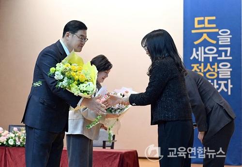 À̳¯ ÃëÀӽĿ¡´Â ±³Á÷¿ø°ú Ãѵ¿Ã¢È¸, ÃÑÇлýȸ ´ëÇ¥µéÀÌ ½ÅÀÓ ÀÌ»çÀåÀÇ ÃëÀÓ»ç ¸Þ½ÃÁö¸¦ µÇ³úÀ̸ç ÃàÇÏÀÇ ²É´Ù¹ßÀ» Àü´ÞÇÏ´Â ±â³ä ÆÛÆ÷¸Õ½º°¡ ÁøÇàµÅ ´«±æÀ» ²ø¾ú´Ù. ¶Ç ÃëÀÓ½Ä ÈÄ¿¡´Â Àüü ±³Á÷¿øµé°ú ½Å³âȸ¸¦ °âÇØ Àλ縦 ³ª´©´Â ½Ã°£ÀÌ ¸¶·ÃµÆ´Ù.